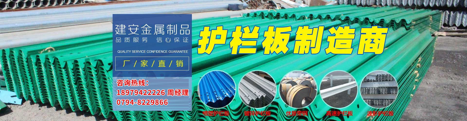 公司主要產品有:高速護欄板、護欄立柱、市政交通護欄、橋梁護欄、圍墻護欄、隔音屏、絲網制品等交通配套設施,產品質量達到行業要求檢測標準。公司下設的護欄生產車間擁有先進的輥壓、切割、焊接、編織、冷彎成型等成套加工設備30多臺(套),以及兩條熱浸鍍鋅生產線、兩條靜電噴塑生產線、一條熱浸涂塑生產線。各種生產設備齊全,技術力量雄厚。產品廣泛應用到現代化社會建設中,具有美化環境、堅固耐用、不易褪色變形、安裝方便等優點。深受客戶的信賴與好評!